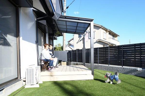 庭に物干しコーナーを設けて洗濯家事が楽々! 目隠しのおかげで周囲の視線も気になりません