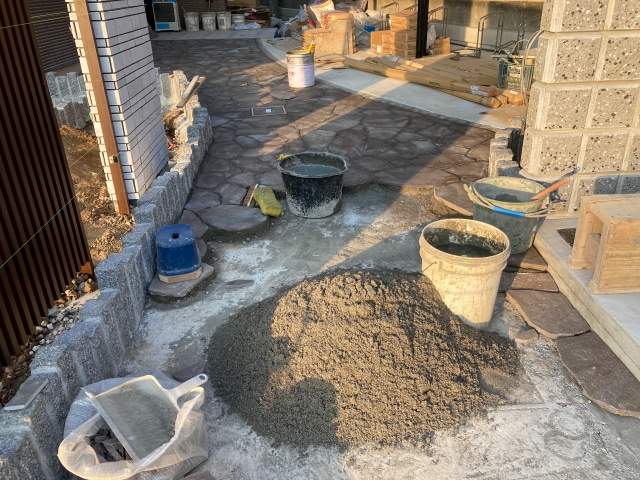 砂利だけだと歩きにくいという場合は「所々に敷石を置く」「人が通る部分にコンクリートでスロープを作る」などで対応可能です。
