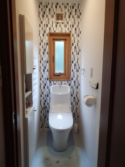 トイレのリフォームに伴い、アクセントクロスを取り入れた事例です。