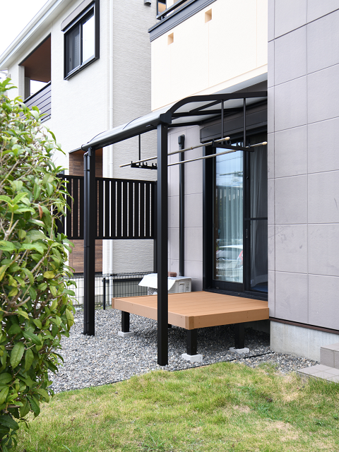 完成後は生活が本当に楽になりました。洗濯物干しのための階段の上り下りがなくなっただけで、こんなにも楽になるとは思いませんでした。ウッドデッキには屋根も付けてあるので、大降りの雨でなければ洗濯物が濡れずに済みます。