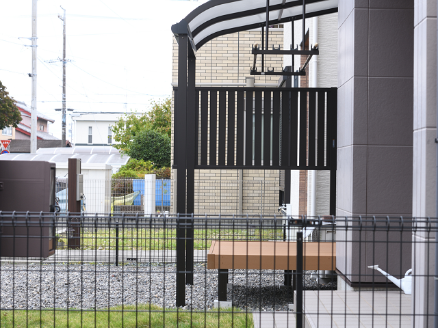 庭に物干しコーナーを設けて洗濯家事が楽々! 目隠しのおかげで周囲の視線も気になりません