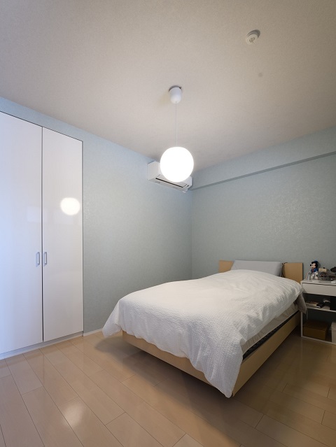 リノベーションでは基本の間取りは変更せず、各スペースの内装とユニットバスを交換することに。私たちは好みが違うので、プライベートルームはそれぞれに考えることにして、リビングなどの共有スペースはナチュラルモダンなテイストで統一しようと意見がまとまりました。実際の打ち合わせでは、担当者さんが親身になって相談に乗ってくださいました。クロス選びでは何度も迷って変更したり、一時期は南国風のイメージも考えたりしましたが(笑)、その都度嫌な顔ひとつせずに提案を持ってきてくださって。私たちのペースに合わせて、じっくり考える時間をくださったことに感謝しています。