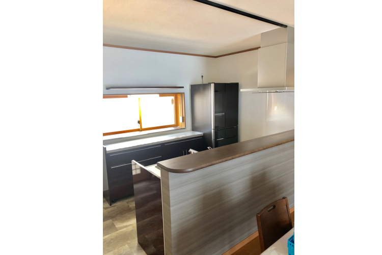 L型のキッチンから対面式のI型キッチンへ「形と場所」を変えるご提案をいたしました。