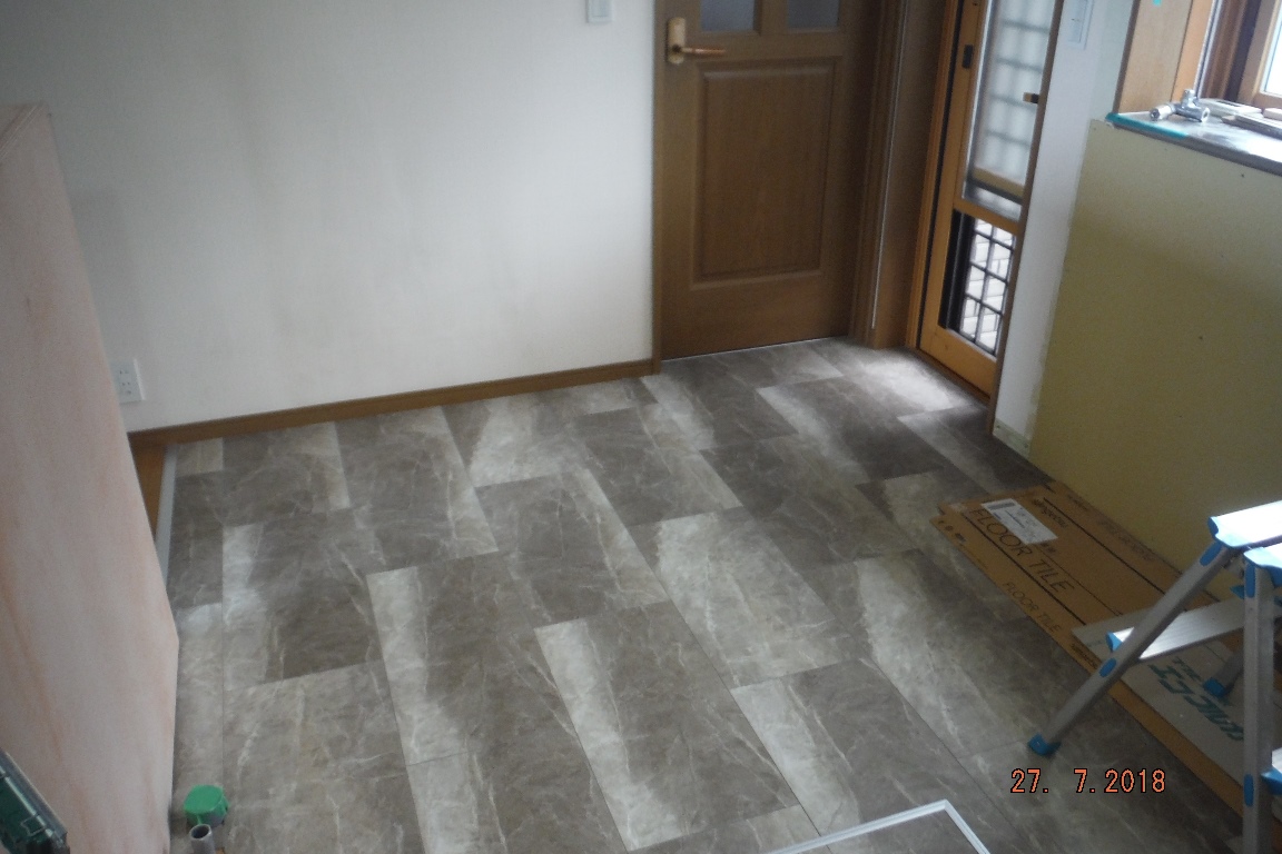 穴を隠す為、厚さ2.5mmのフロアタイルを施工いたしました。