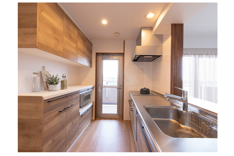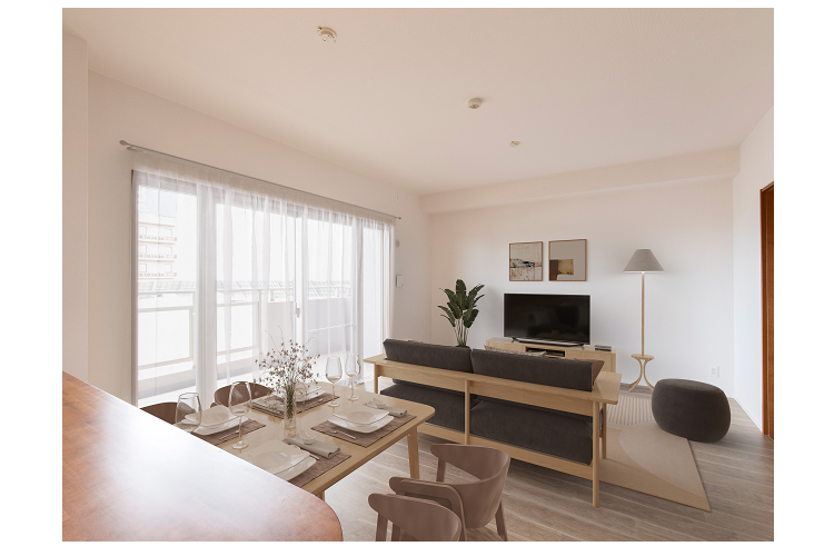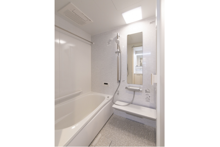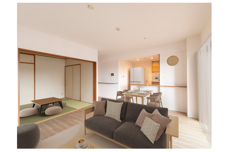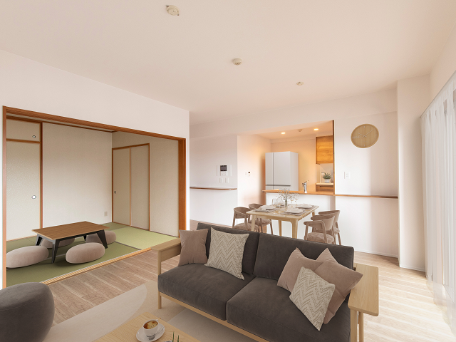 フルリノベーションをして、綺麗にして再販するため、清潔感を重視した内装を選びました。LDKは和室もつながっているため、ナチュラルなインテリアに仕上げました。水回りは明るく清潔感のある、白を基調とし選定しました。最新の設備を導入し、快適に生活いただける空間に仕上がりました。