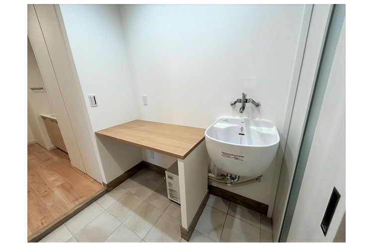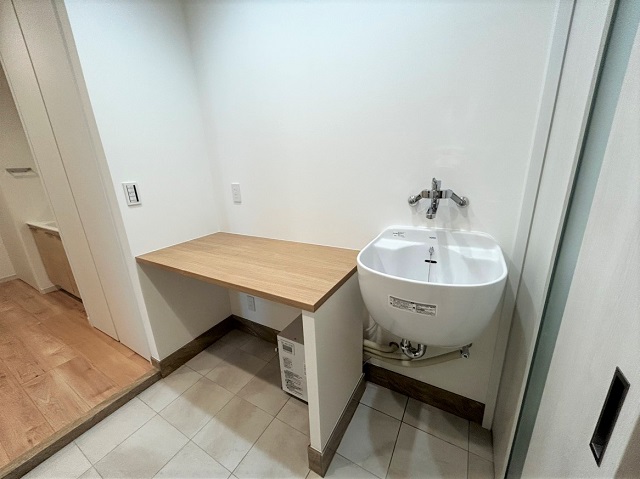 | 使用商材 | ・洗面化粧台 :TOTO オクターブ W1200 ・トイレ :TOTO NJ1 ・スロップシンク :TOTO 洗濯用流し大 ・建具 :LIXIL ラシッサS ・防音床 :LIXIL ラシッサD遮音 ・内窓 :YKKap ウチマド |
